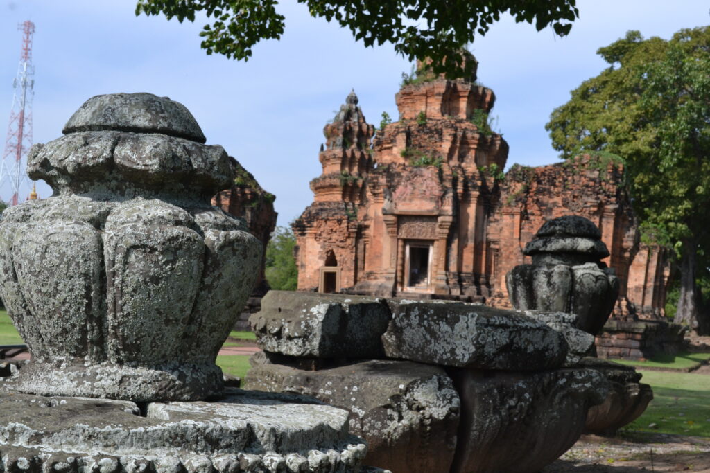 ส่วนปรางค์บริวารพบทับหลัง 2 ชิ้น ปัจจุบันเก็บรักษาไว้ที่ พิพิธภัณฑสถานแห่งชาติ พิมาย เป็นภาพกฤษณาวตารทั้งสองชิ้น ชิ้นหนึ่งเป็นภาพพระกฤษณะฆ่าช้างและคชสีห์ ส่วนอีกชิ้นหนึ่งเป็นภาพพระกฤษณฆ่าคชสีห์